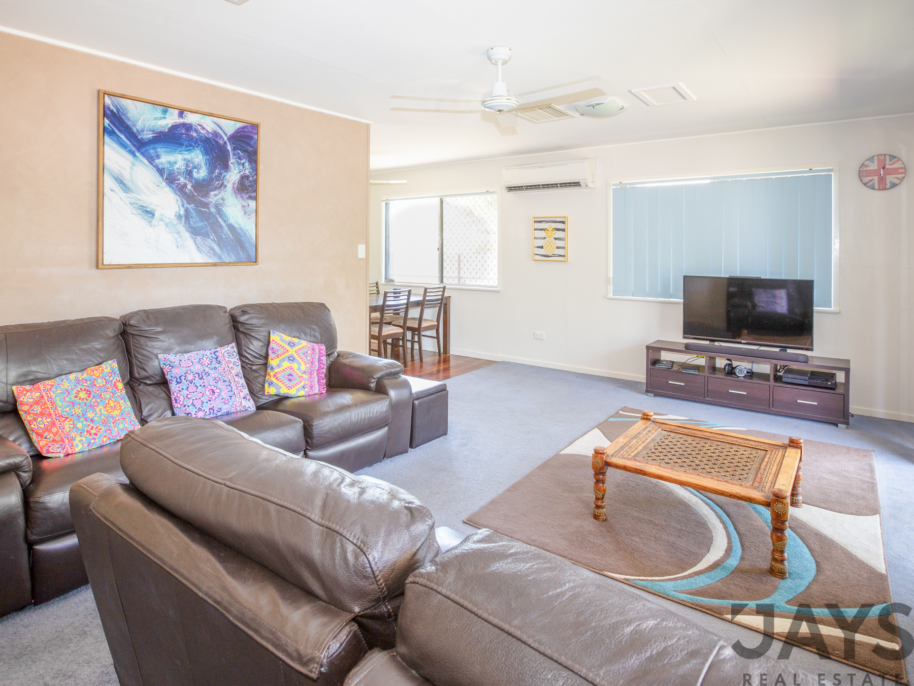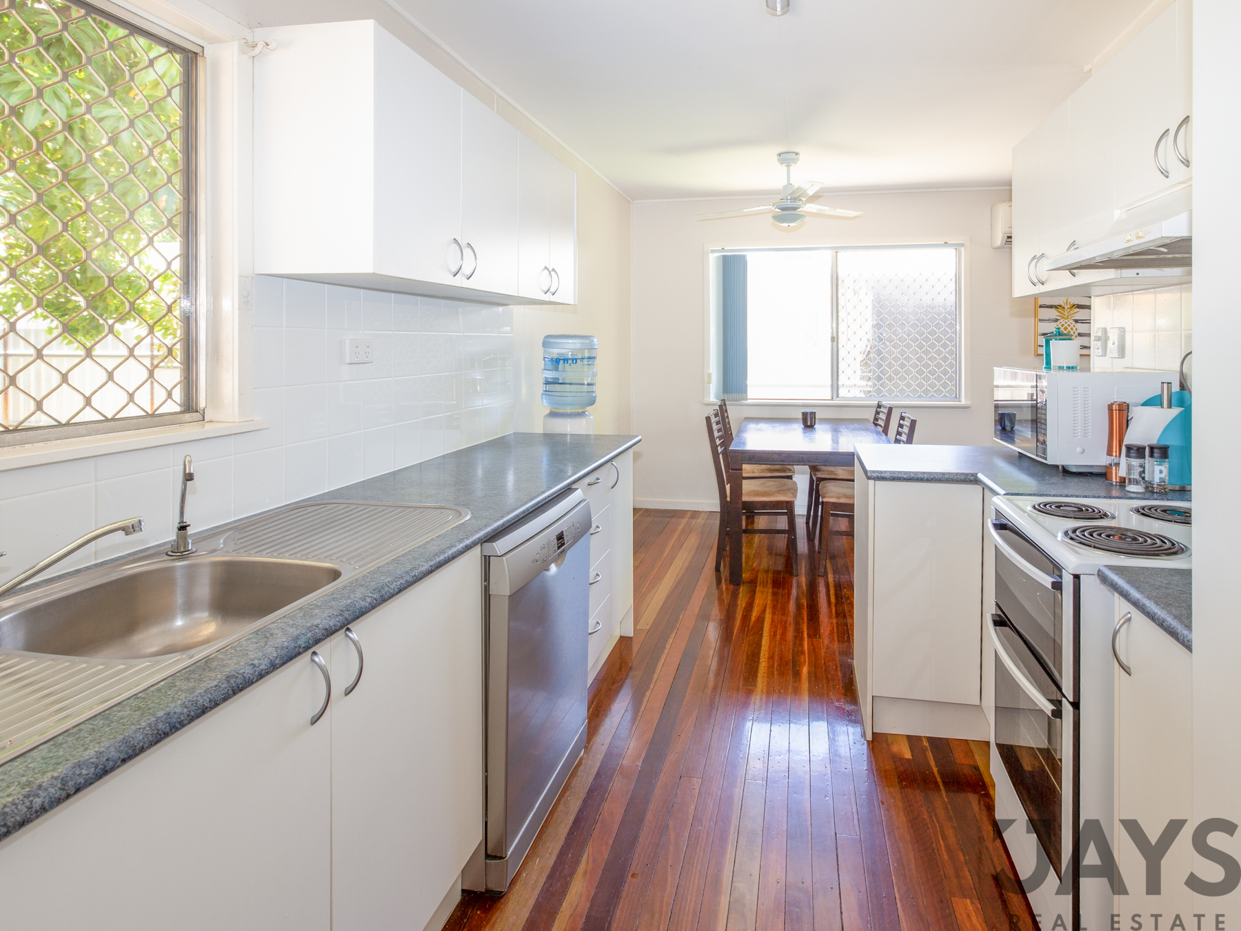 - Dining off the modern kitchen - Solar hot water system and Tarrif 33 installed for aircons - Evap, split air in main and bed 1, box style air in bed 2 & 3 - Inground quality salt water pool - Huge entertainment area with fans - Auto irrigated lawns and gardens - Huge extended garden shed for extra storage - Block constructed single lockup shed or pool house - Security screens and doors, fans throughout - Freehold 809m2 block in Healy