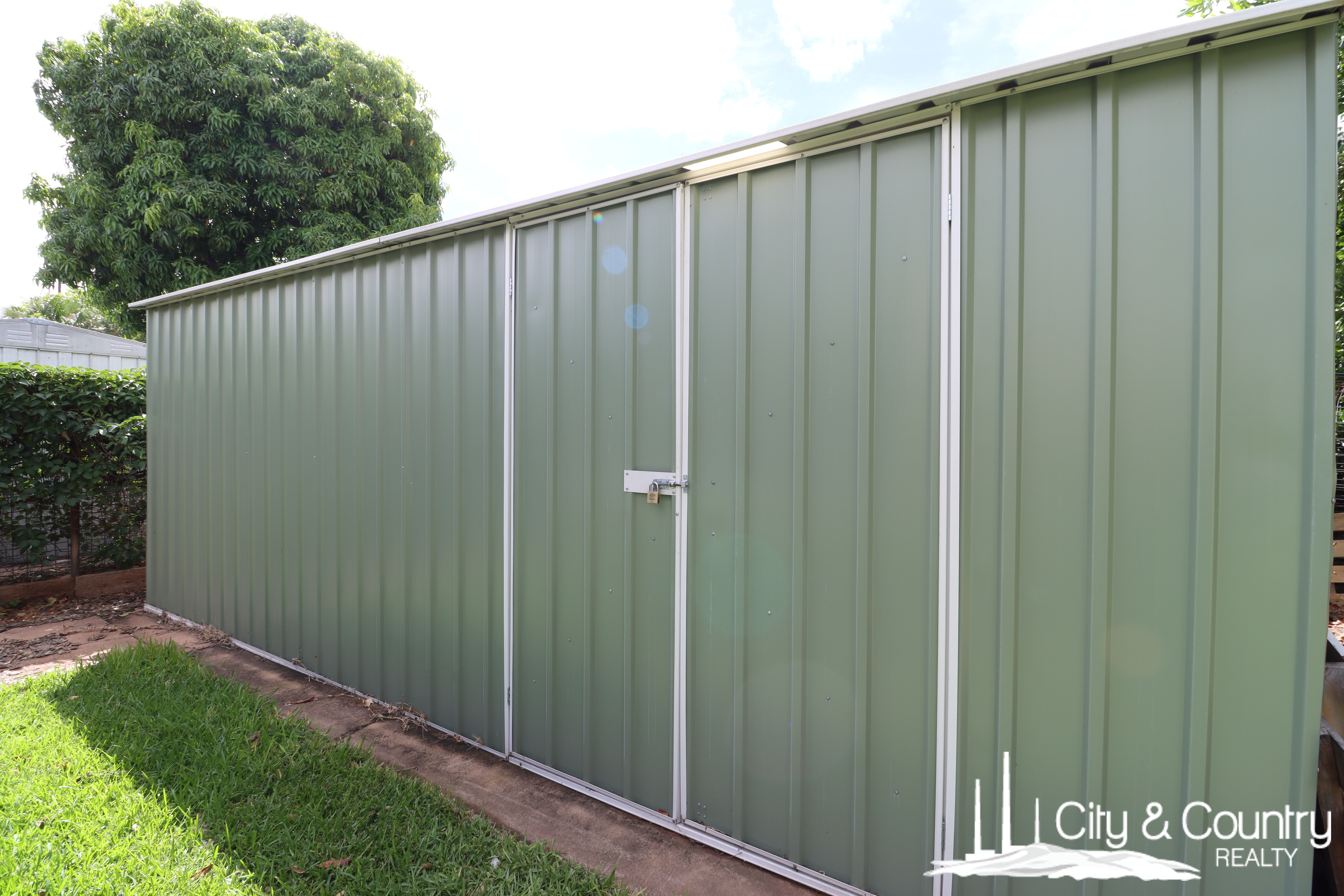 The undercover area, perfect for outdoor entertaining. Ample lawn space for children's play. A large garden shed on a cement slab to occupy all your bikes, tools and storage items.
